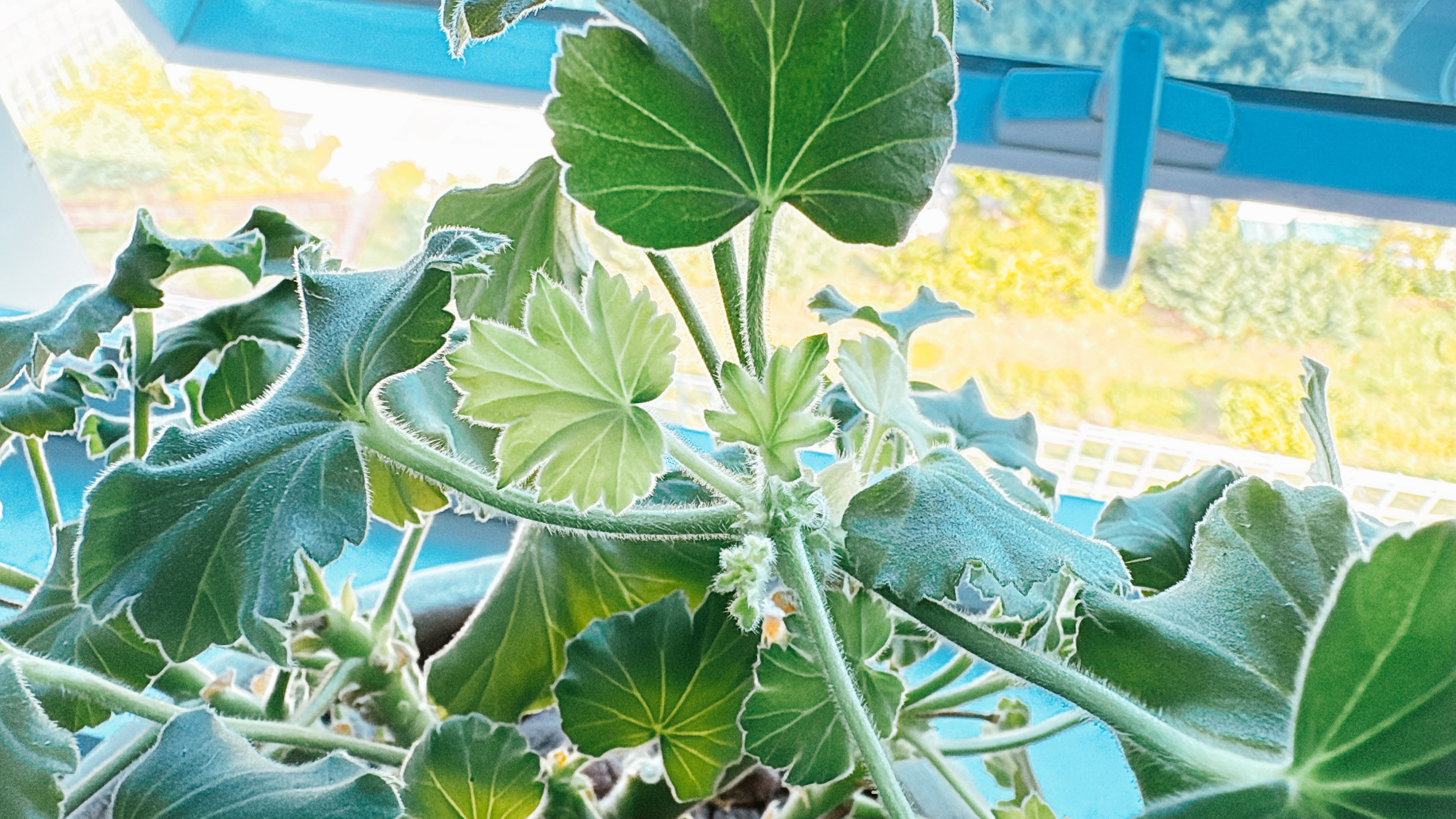 제라늄의 잎을 손끝으로 살짝 스치면